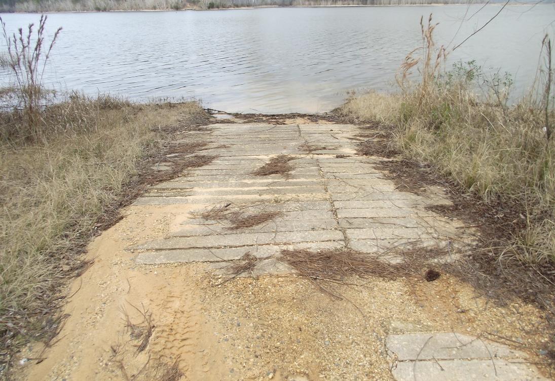 Looking north from the South Entrance Road. Bear right to campground. Ramp straight ahead Boarding dock to right of ramp Bathroom . Campground host just beyond bathroom. |