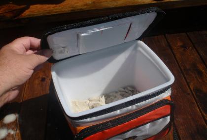 If you want to take them home with you, put them in a container and place them between layers of damp newspapers. In the refrigerator would be idea or in a cooler with some ice. Change or rinse the newspaper daily. After a few days, you should go ahead and freeze them. There are two thoughts on this: 1. Scald them in boiling water about 10 seconds, then put in a freezer bag. 2. Put them in a freezer bag with a mixture of salt and baking powder (equal proportions). Then place the bag in the freezer. Also if you use a vacuum sealer, the bait will keep longer in it |