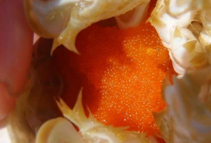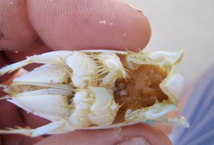 On one scoop I made, there were maybe 4-5 smaller crabs hanging on to a larger one. According to the bilogist, these are small males attracted to a larger female. Who knows, interesting though. |