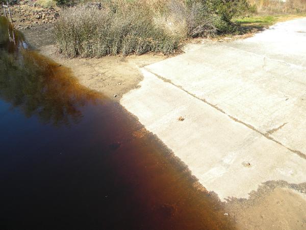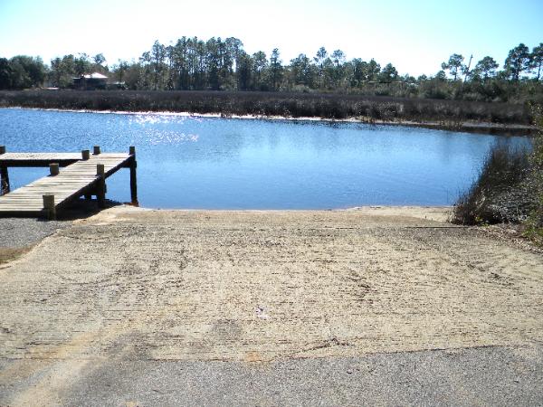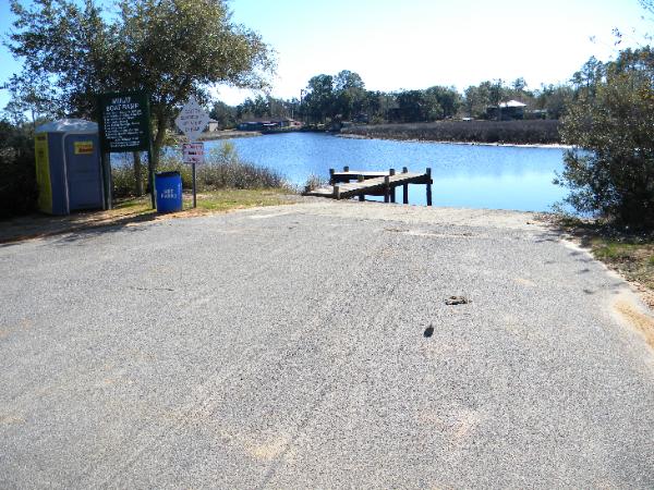 Boat Ramp Description: Looks like a good wide, concrete boat ramp. Sign at site states "Caution, severe drop off at end of ramp". I have not used this ramp but looks like you could off load a large boat (at least 25-27') without a problem.