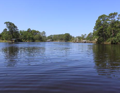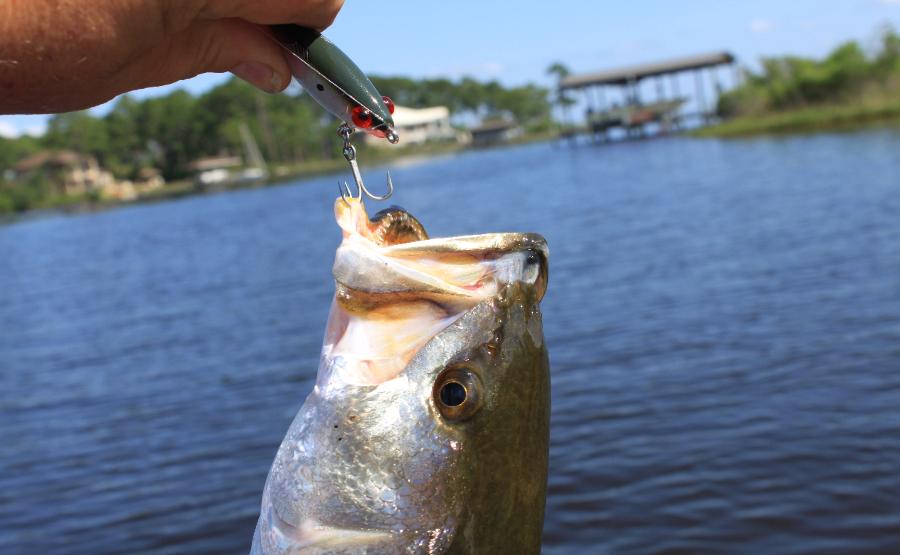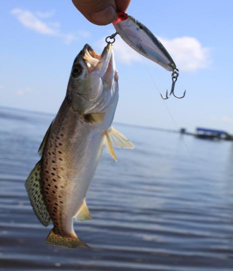 | Spent a few hours on Hewett Bayou this morning. Hewett Bayou is located about 8 miles east of Destin Commons, off of Hogtown Bayou. Nice day, got started late, around 8:30. Put in at the Bay Circle boat ramp which is a small, narrow ramp, suitable only for kayaks and small boats. You could launch a small jon boat there with a trailer if you are careful. The sandy bottom drops off sharply after the concrete ends. No real parking as it is an end-of-the street ramp with houses on both sides. Someone has planted shrubs on both sides of the street but still enough room on the shoulder for one or two vehicles. If you have a boat of any size, I would put in at the Cessna Landing park which has a first class ramp. Used artificials, gold spoons, MirrOlure, DOA shrimp. Hooked onto a trout around 9:15 but got off at the boat. Hooked another one (or the same one ?) about 2 minutes later and landed him. A little over 19" on a MirrOlure. Went all the way to the south end of the bayou throwing at docks and the grass, nothing. Saw a few mullet jumping but could not locate the schools. Back at the entrance channel was able to land a little dink trout, again on the same MirrOlure.. Got hot quick and was back at the ramp by 10:30am. Water clarity was not that good, still a little muddy. Had a north wind initially then switched to a south wind, maybe 10 knots. |