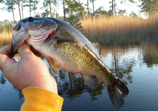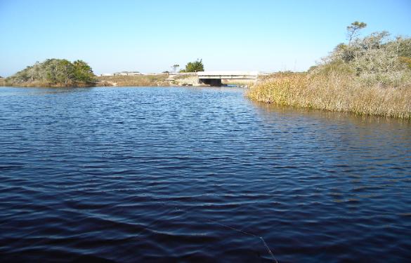 WESTERN LAKE Description & location: Western Lake is a 214 acre natural lake located approximately 24 miles east of Destin, about a 35-45 minute drive. It is one of the "Coastal Dune Lakes" that are common to this area but are rare throughout the rest of the world. It is relatively shallow, being 8' deep at the best. The lake is primarily a freshwater lake but does have increased salinity from periodic overflows from the ocean during storms and seepage through the ground. It is fed by several small streams with no permanent outflow. When water levels are high enough, it will flow into the ocean. The beach overflow is at the south end of the western lake, next to the town of Grayton. The water in Western Lake is "tannic" . (As vegetation decays, tannins leach into the water, making a transparent, acidic water that is darkly stained, resembling tea or coffee) Although tea stained, it is still relatively clear and is a clean lake. The bottom of the lake is sand with no structure that I know of. There are several areas with lily pads and other floating vegetation if you want to fish a frog or other weedless lure. The lake is divided into four parts, separated by bridges. There is access between the four parts, but bridge heights vary with the water level. The section between the east and western portions of the lake is navigable by kayaks and small boats, depending on water levels. A bass boat would probably run aground. |
