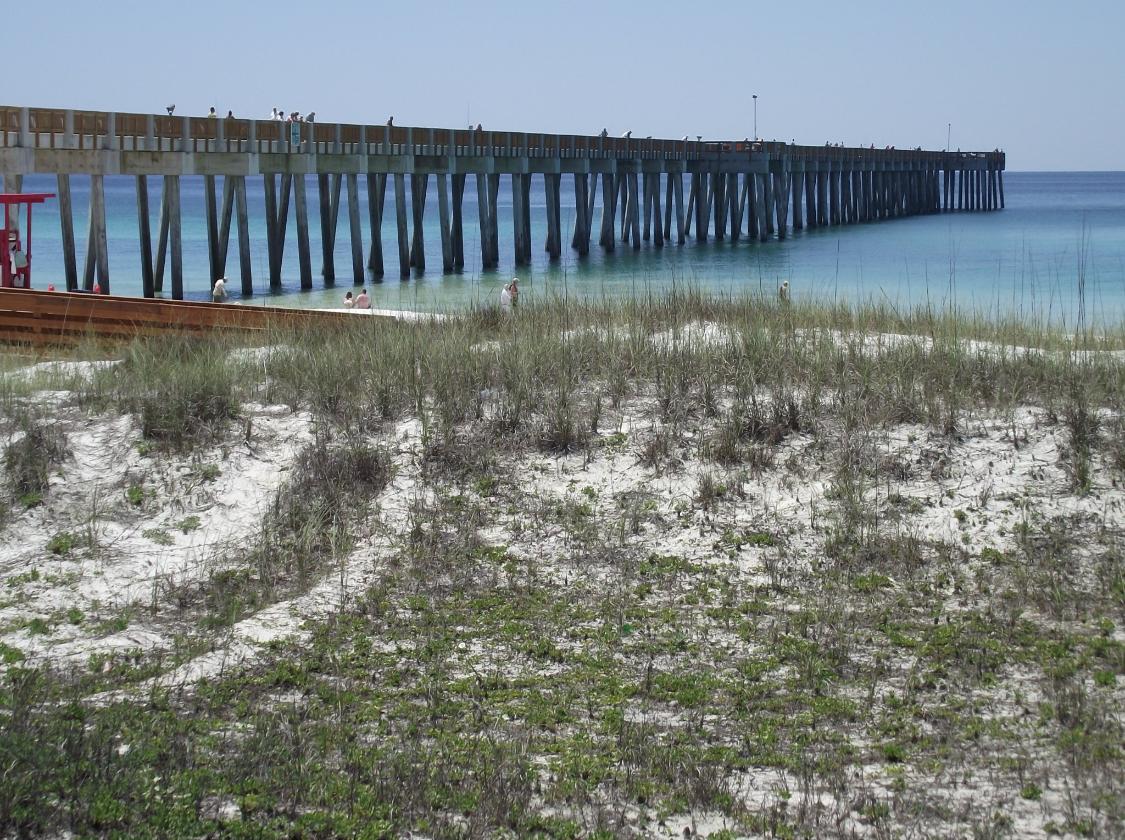 (City) Pier 16049 Front Beach Road Panama City Beach, FL 32413 850-233-5080 Operated by the city of Panama City Beach. Opened on July 4, 2009, it replaced the one destroyed by Hurricanes Opal and Ivan. At approximately 1500' long, it is one of the longest piers on the gulf coast. Its almost twin sister, the County pier, lies only a few miles east of it. |