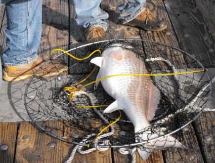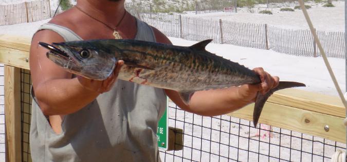 A wide variety of fish may be caught from the piers. With lengths from 1200 to 1500' out into the ocean, just about any of the saltwater fish in this area except the big game fish can be caught there. One of the major factors in catching fish there is the time of year due to migration patterns of the various fish. Here is a general idea by the time of year. JANUARY: Redfish, Flounder, Bonito FEBRUARY: Redfish, Bonito MARCH: Redfish, Bluefish, Pompano, Cobia, Spanish Mackerel APRIL: Redfish, Sheepshead, Bluefish, Pompano, Spanish Mackerel, King Mackerel, Cobia. Baitfish also start showing up. MAY: Redfish, Bluefish, Pompano, Spanish Mackerel, King Mackerel, Cobia, Ladyfish, Bonito,and baitfish. JUNE: Bluefish, Spanish Mackerel, King Mackerel, Bonito, Ladyfish, and baitfish. JULY: Bluefish, Spanish Mackerel, King Mackerel, Lady Fish, Bonito and baitfish. AUGUST: Bluefish, Spanish Mackerel, King Mackerel, Ladyfish, Bonito and baitfish. SEPTEMBER: Bluefish, Spanish Mackerel, King Mackerel, Ladyfish, Bonito and baitfish. OCTOBER: Redfish, Bluefish, Spanish Mackerel, King Mackerel, Flounder, Last of the baitfish for the season. NOVEMBER: Redfish, Bluefish, Flounder. Baitfish are pretty much gone by now. DECEMBER: Redfish, Flounder, Bonito |