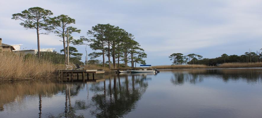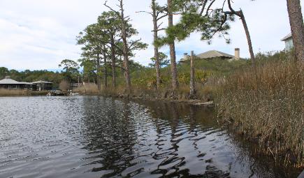 town of Grayton Beach. If you have ever been to the Red Bar, you can see the ramp from it. Grayton Beach is pretty empty right now, just a few snow birds and locals. Parking at the ramp is limited, maybe 3-4 vehicles max, but I was the only person using the ramp and on the lake today.