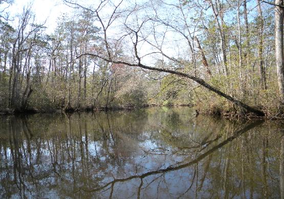 The creek here is relatively narrow and slow