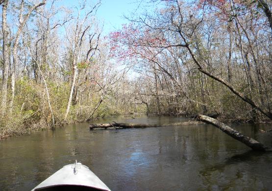 to widen and also pick up speed. There are many trees down in the water and you may have to cut them away or find another way around