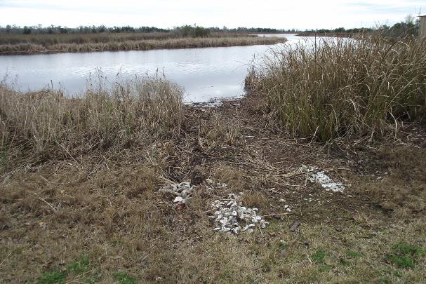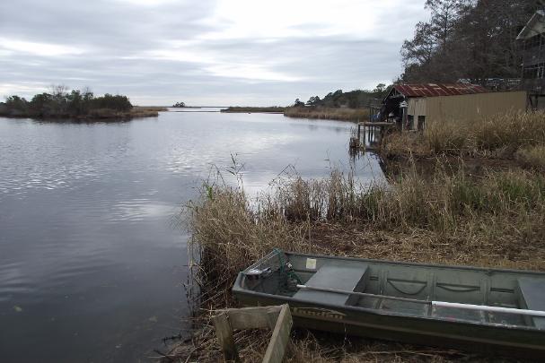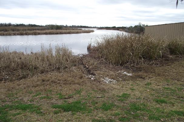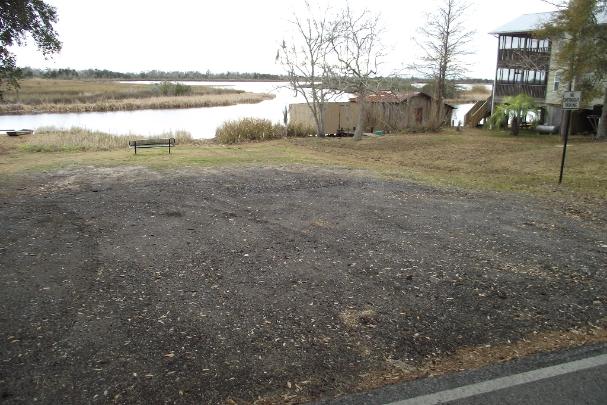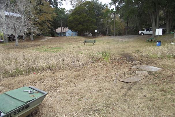 Looking north from the waters edge. Pitts Bayshore Drive is at the top of the rise where the white truck is.